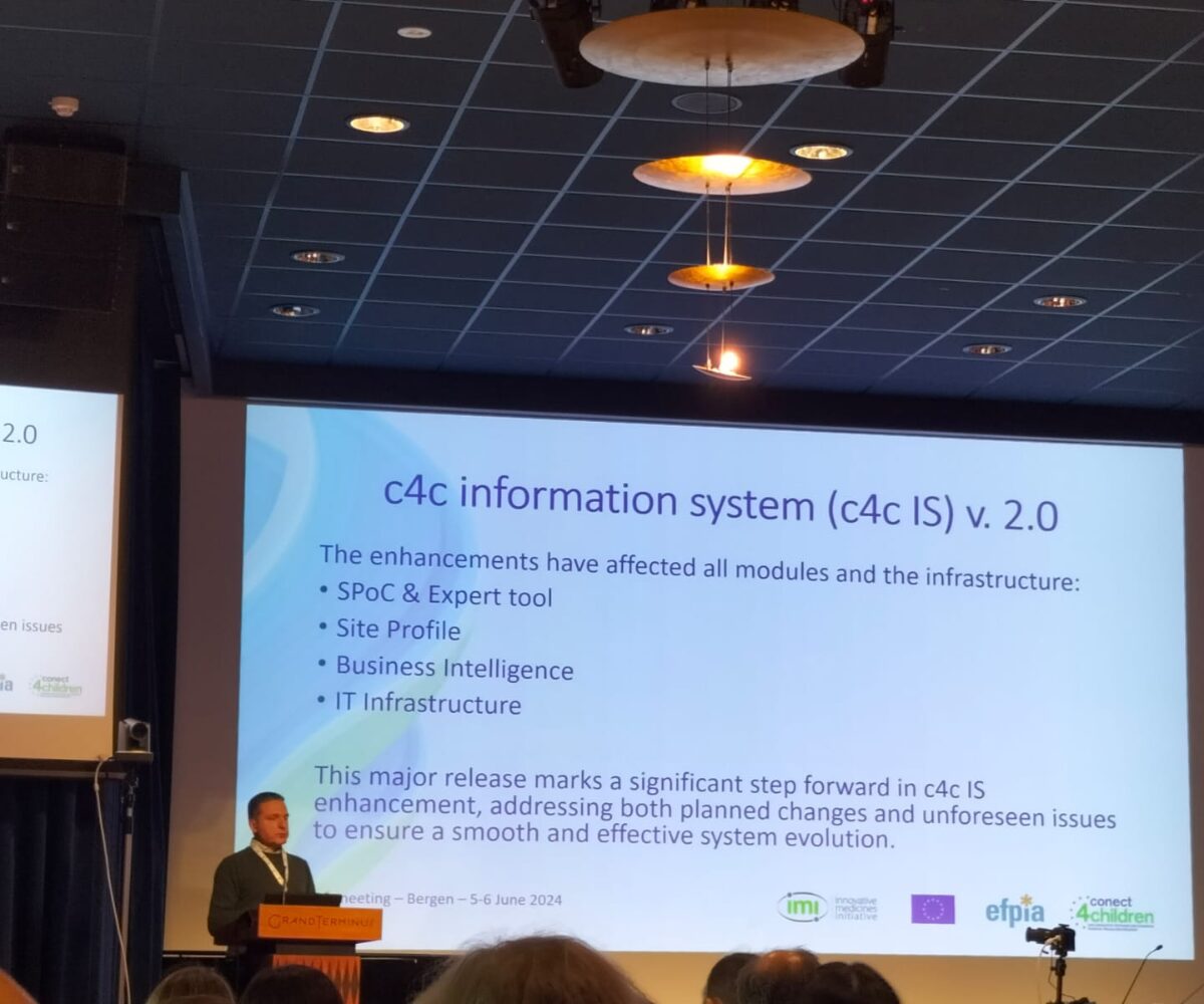 During the meeting, the President of Fondazione Gianni Benzi, Fedele Bonifazi, presented a report on the status of the c4c Information System (c4c IS). He reported that the c4c IS had been upgraded to version 2.0, with major enhancements to functionality and user experience. In addition, the first version of the system for the c4c-S was released. He also presented new dashboards for the Site Profiles and SPoC (Single Points of Contact) modules. The Site Profile dashboards provide an overview of the network capabilities and infrastructure supporting paediatric clinical trials in Europe. SPoC dashboards provide a detailed visual representation of the internal processes handled by the SPoC team.